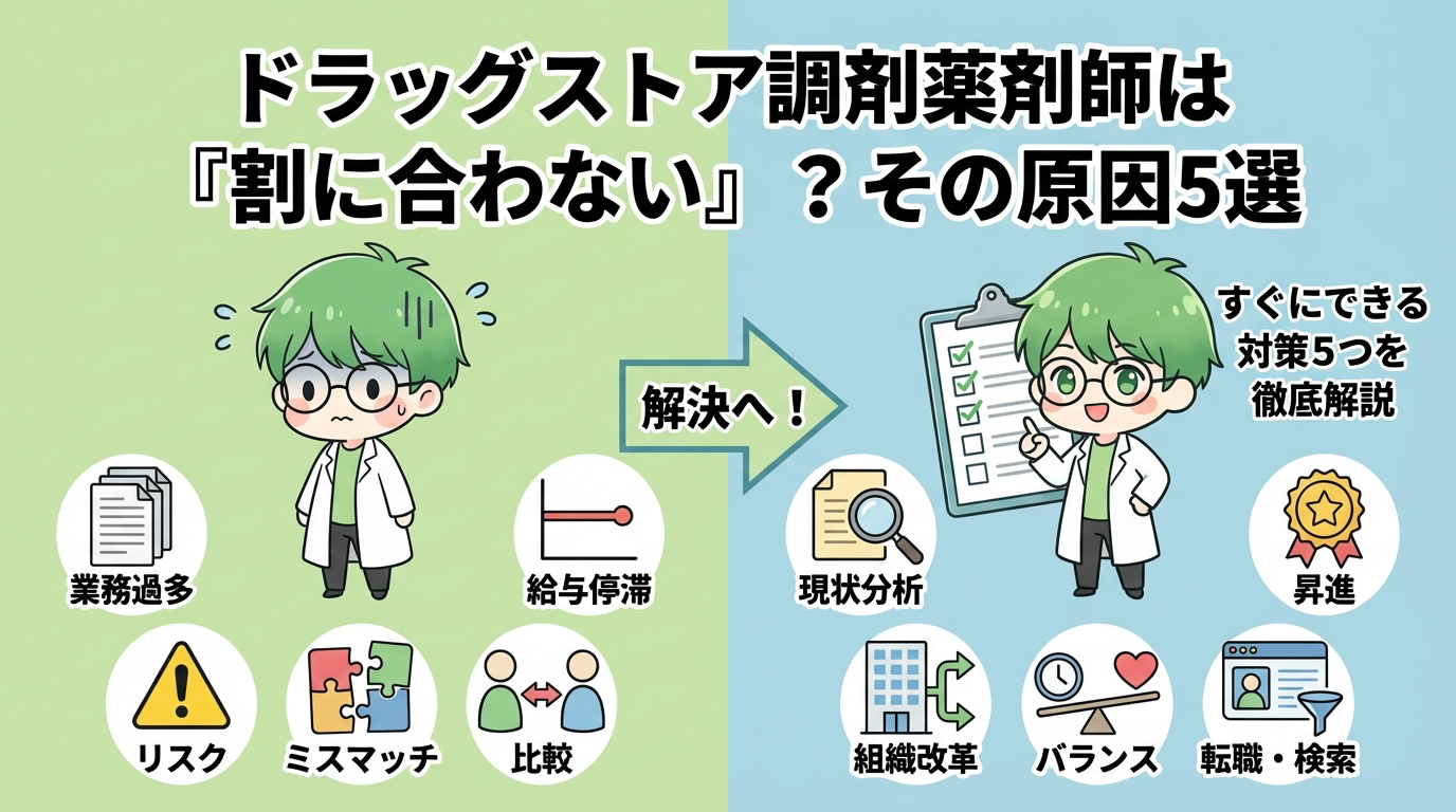 ドラッグストア調剤薬剤師は「割に合わない」?|その原因5選とすぐにできる対策5つを徹底解説